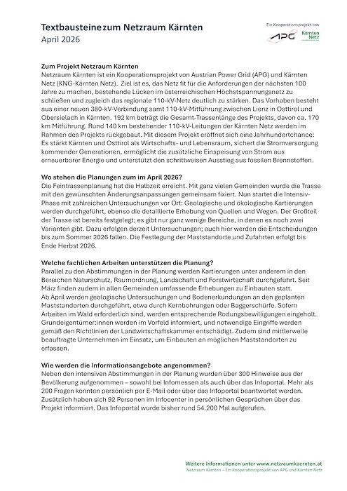 Information der APG und Kärnten Netz zur “380 kV Leitung”