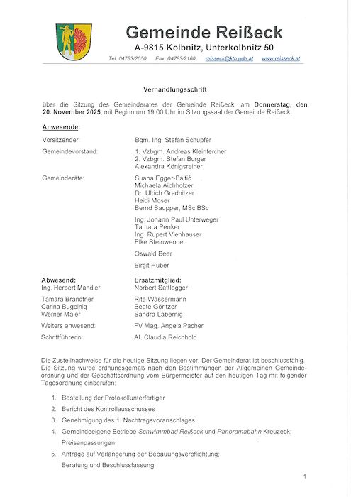 Protokoll vom 20. November 2025